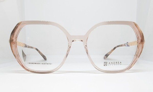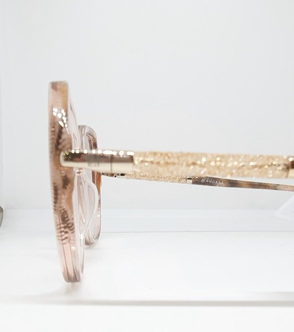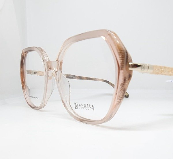 Armazón de acetato Andrea hexagonal nude con detales beige. Patillas brillo