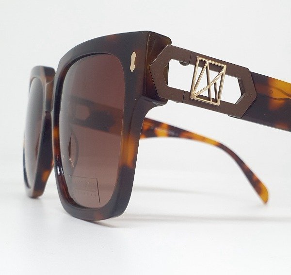 Acetato cuadrado carey con patillas anchas con aplique dorado y marrón metal