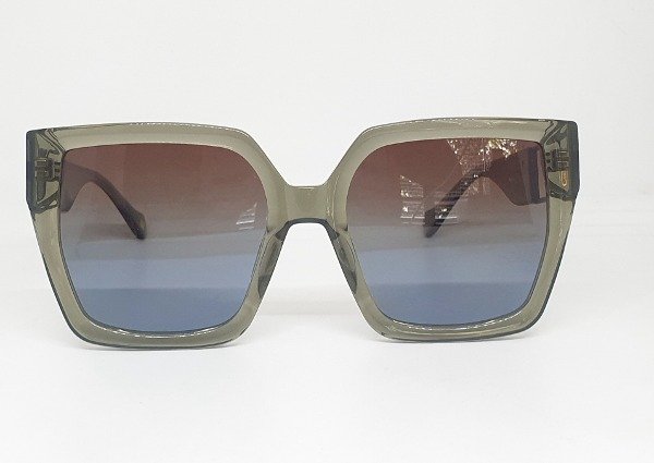 Acetato cuadrado grande gris con patillas anchas con aplique marrón metal