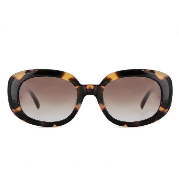 Material en acetato, color carey, formato ovalado.