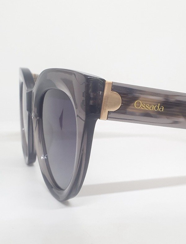 Armazón de acetato formato pinup, gris traslúcido, patillas de color animal print