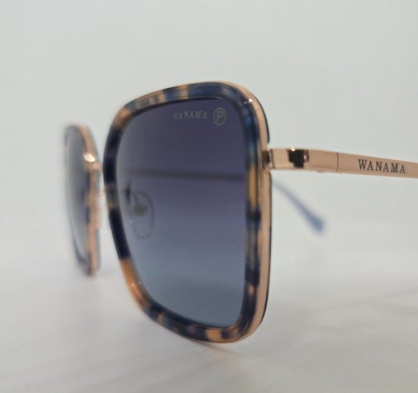 Metal cuadrado grande dorado con transferencia azul y marrón