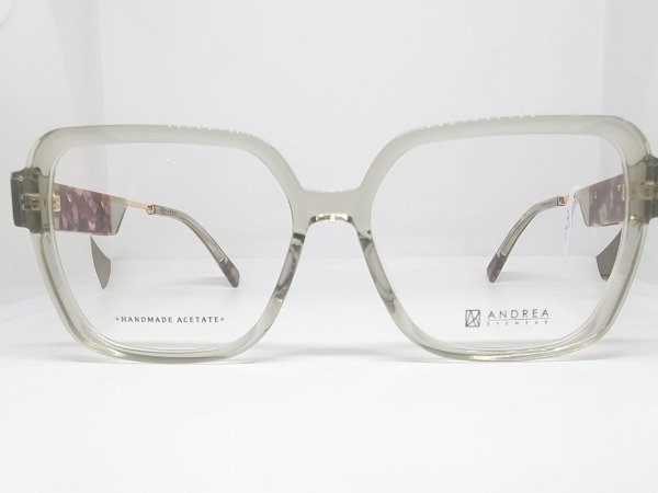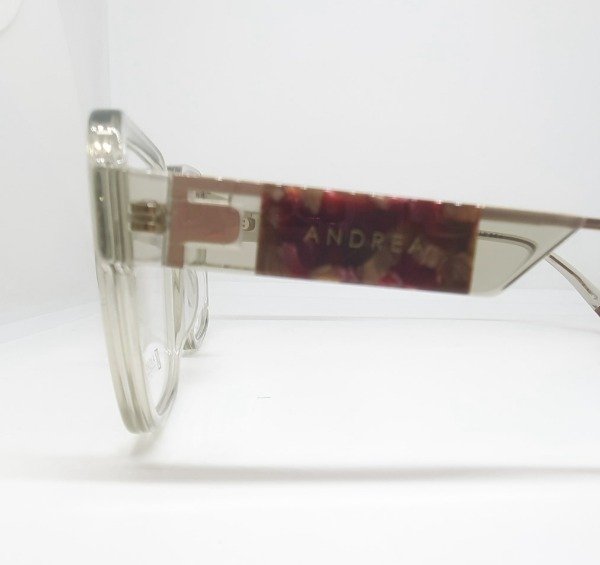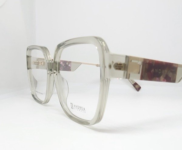 Armazón de acetato Andrea cuadrado gris con detales ocre y rosa Patillas metal dorado