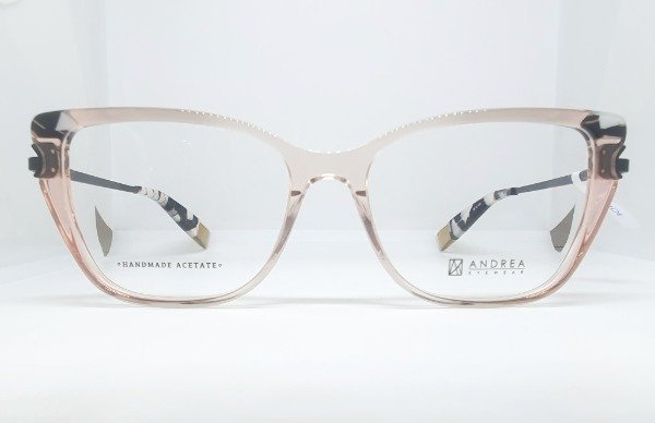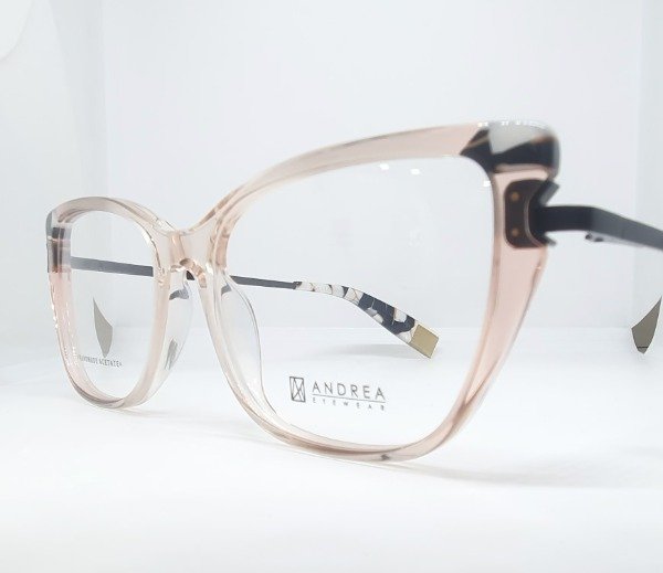 Armazón de acetato Andrea nude transparente con detales negro. Patillas metal