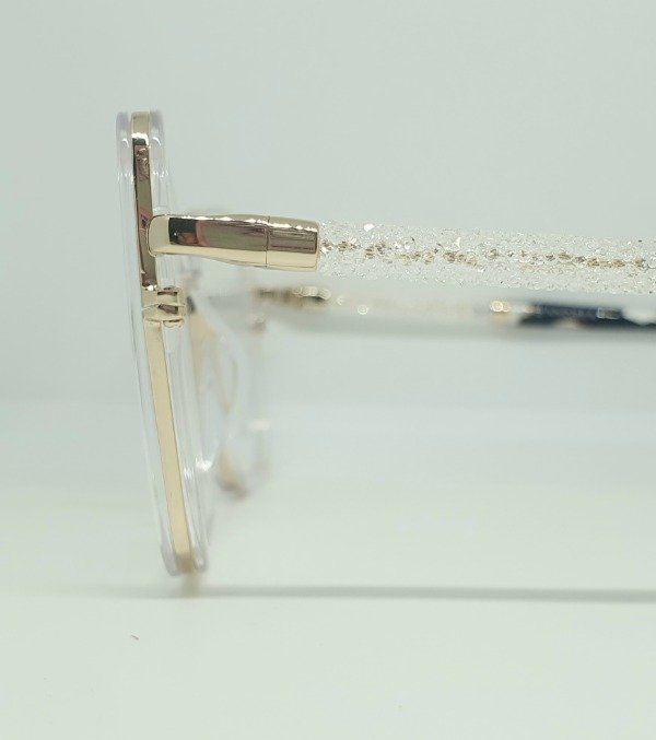 Armazón de acetato Andrea transparente con detales marmolados. Patillas metal y forradas con brillo