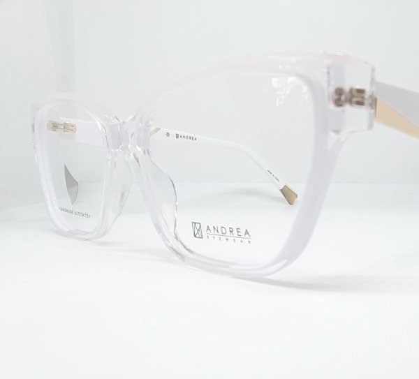 Armazón de acetato Andrea transparente con detales beige y blanco Patillas blanco y dorado