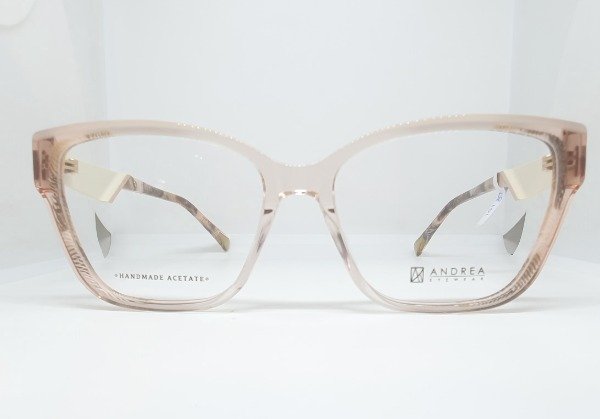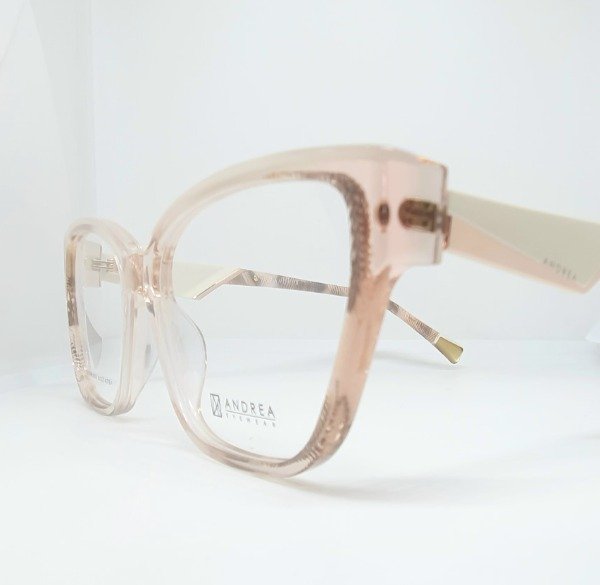 Armazón de acetato Andrea nude con detales beige. Patillas dorado y nude