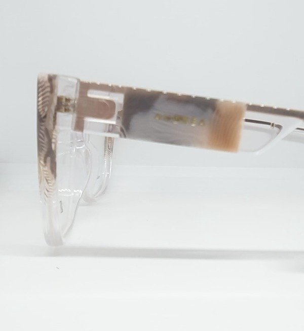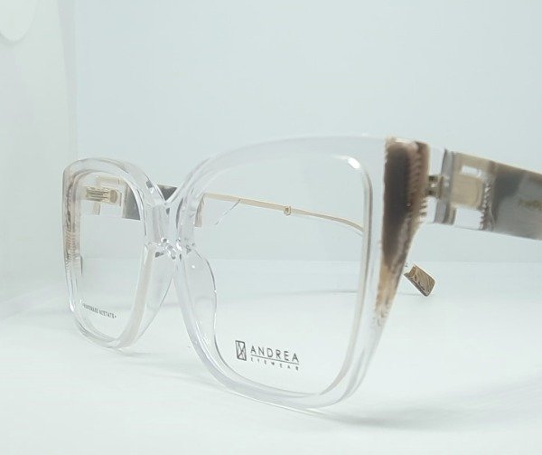 Armazón de acetato Andrea transparente con detales marmolados. Patillas metal y forradas