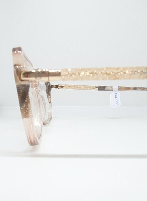 Armazón de acetato Andrea cuadrado nude con detales beige. Patillas brillo