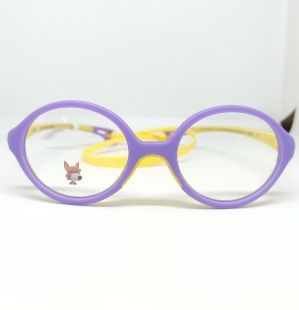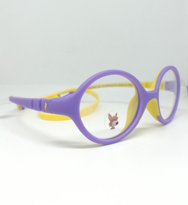 Material en tr90 liviano, formato redondo chico Color violeta y amarillo.
