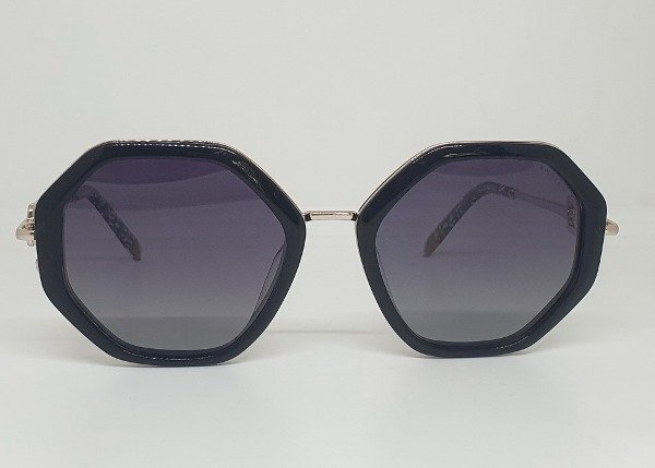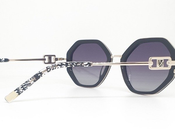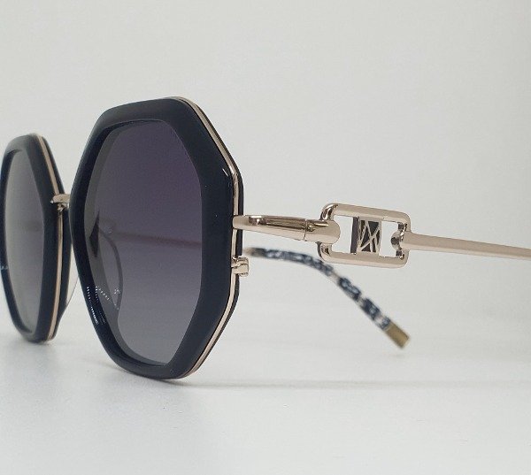 Acetato hexagonal negro con patillas y puente metalicos dorados